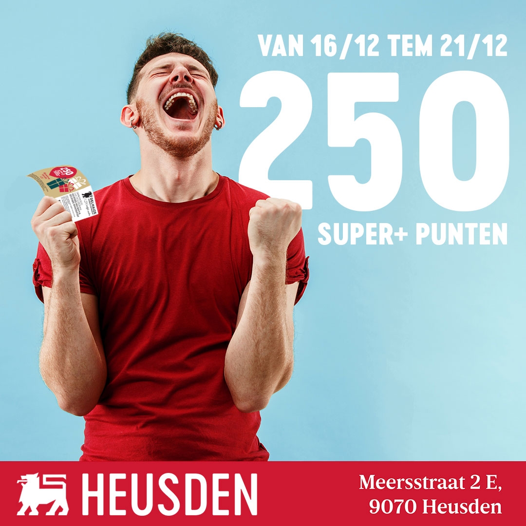 De feestdagen komen eraan en bij Delhaize Heusden hebben we maar één missie: jou én je Superplus-kaart een flinke boost geven! 💪 Van half december tot eind januari staat het puntenkanon op volle toeren en regent het Superplus punten. Sparen was nog nooit zo makkelijk... én zo leuk!